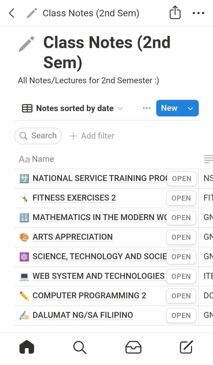 Now, I use Notion as my notes app. I used Google Keep Notes before, which was heavy on storage and sometimes laggy. It also lacked features compared to Notion, where you can upload your PDF files to store and categorize them so that when review weeks for preparing for exams come, everything is already organized.